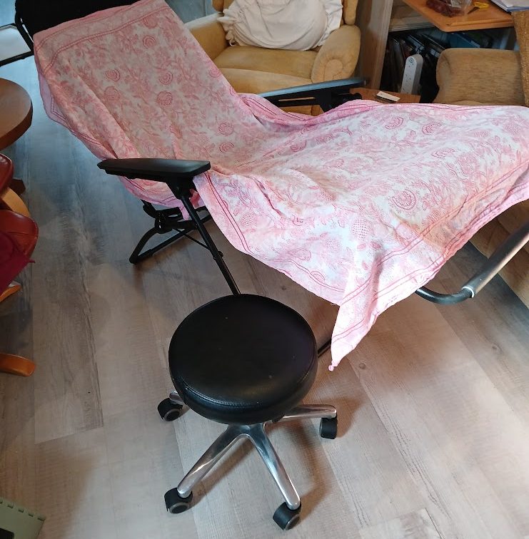 I will visit you in your home and bring everything we need with me. For foot reflexology I will need socks and shoes removed and will be working around the feet and ankles. This will involve gentle touch and some pressure.